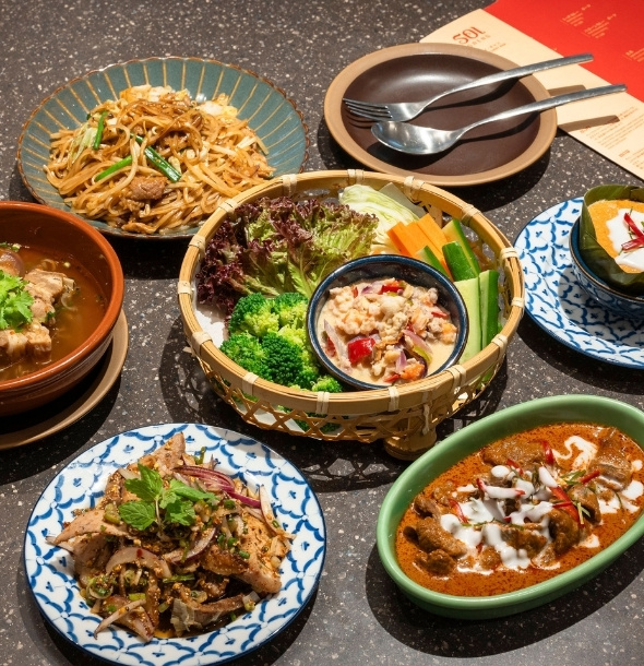 毎月 第3日曜日は、本格的な「カオラットゲーン」ランチの魅力的なフレーバーをお楽しみください。ソイギャンのバーカウンターで、シェフ・レイが目の前で一皿一皿を仕上げるライブ感あふれるパフォーマンスをお届けします。香り豊かなジャスミンライスに、お好きな料理を2品から6品お選びいただけます。本場バンコクの味を存分に堪能できる、この特別なランチ体験をお見逃しなく!