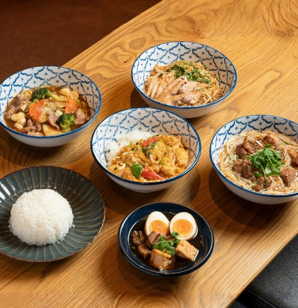 6品からお好きな2品をお選びいただき、香り豊かなジャスミンライスに盛り付けてご提供します。本場バンコクの味を存分に堪能できる、この特別なランチ体験をお見逃しなく!