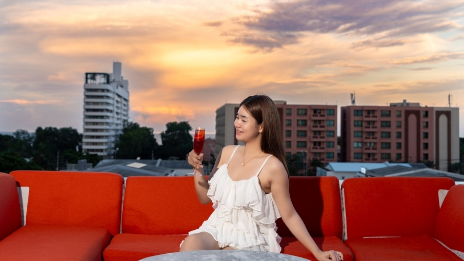 Experience Pacific-inspired vibes at Som Bar — a rooftop escape named after the Thai word for “orange”, symbolizing warmth and vitality. Sip handcrafted cocktails as you watch the sun set over the horizon, with sweeping views of the sea and the infinity pool glistening in golden light. Relax in style, where good drinks and good moods flow effortlessly together