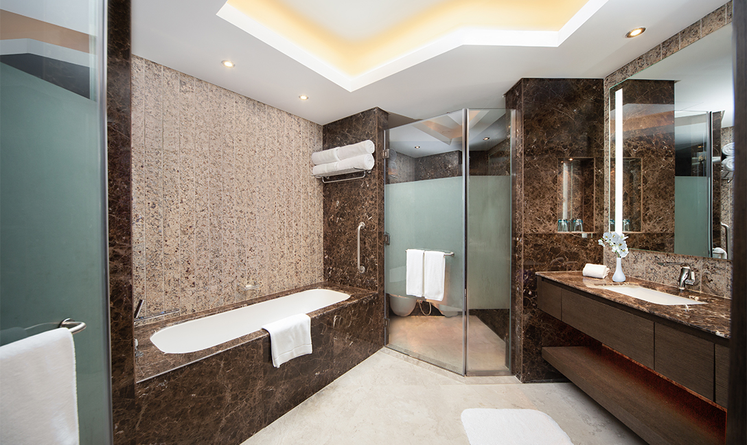 استمتع بالخصوصية الفاخرة في جناح بمساحة 64 مترًا مربعًا يحتوي على غرفة معيشة منفصلة مفروشة بذوق رفيع وغرفة نوم مصممة للراحة. تشمل جميع وسائل الراحة الحديثة مكتب واسع للكتابة، وتلفزيون عالي الدقة بشاشة مسطحة مع وصلات USB، وآلة لصنع القهوة، وحمام داخلي مع دش منفصل ومغطس استحمام.