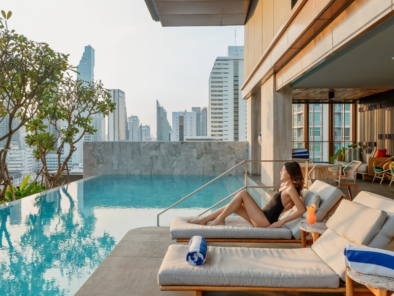 Enjoy serenity and breathtaking Mahanakhon views at our pool, offering the ultimate relaxation experience.
