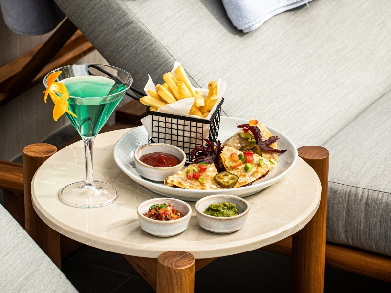 풀이나 실내에서 인기있는 멕시코 요리와 맛있는 간단 안주, 상쾌한 칵테일과 다양한 현지 맥주, 와인, 증류주를 곁들여 미각을 자극해 보세요.