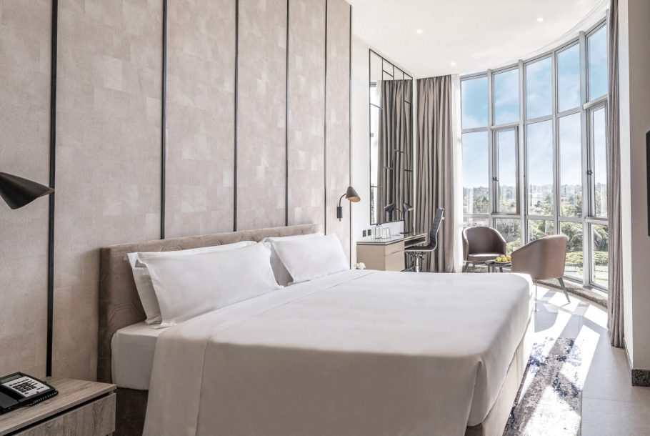 床から天井まで続く大きな窓から美しい街並みを見渡せる客室アップグレードで、ゆったりとお過ごしください。至高のスタイルと眺望をお求めの現代の旅人に理想的な環境です。