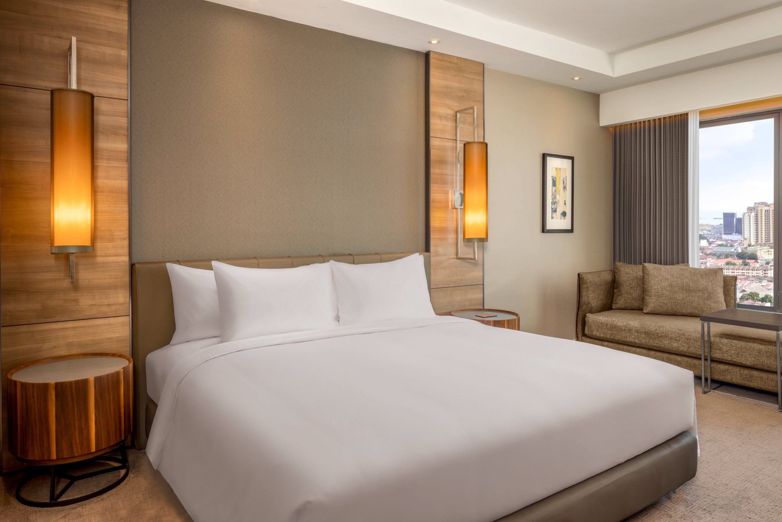 Escape to tranquility in our Deluxe Rooms. Sink into the plush comfort of a king bed or twin beds, while admiring stunning riverside or Straits views. Unwind with your favourite shows on the flat-screen TV and let the stresses of the day melt away.