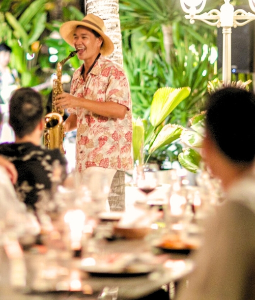 Indulge in a sumptuous feast by the sea, surrounded by joy, music, and the spirit of togetherness.