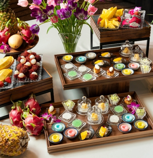At Kati, skilled Thai chefs craft authentic Thai cuisine using carefully selected ingredients, complemented by a diverse menu featuring Japanese and Western dishes. On weekends, guests can enjoy a Thai brunch with a half-buffet, showcasing an array of Thai specialties and seasonal desserts.