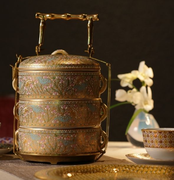 アヤタナの世界観を象徴する、新たなアフタヌーンティーが誕生します。特注で制作したタイの伝統工芸「ベンジャロン焼き」の器に美しく盛り付けられたスイーツとセイボリーは、伝統と現代の感性が響き合う唯一無二のティーセットです。「アヤタナ(Ayatana)」というサンスクリット語で“六感”を意味する名の通り、美しい器、丁寧に淹れたお茶の香り、繊細な味わいが五感を超えて心に深く響く体験をもたらします。