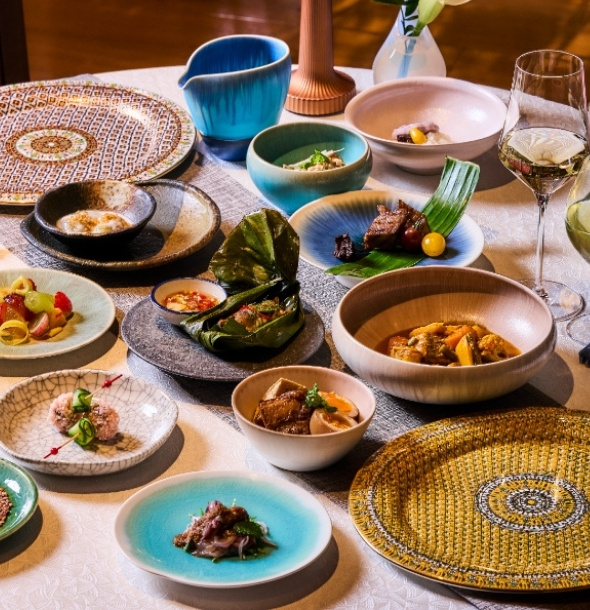 タイの伝統美が息づく、冬限定のディナーコース。期間限定のスペシャルディナーでは、タイ各地の郷土料理のエッセンスを取り入れ、香り高いハーブやスパイス、魚醤やココナッツミルクなど、タイ料理に欠かせない食材と、シェフが選び抜いた日本の旬の野菜や果物を組み合わせた品々をご用意します。