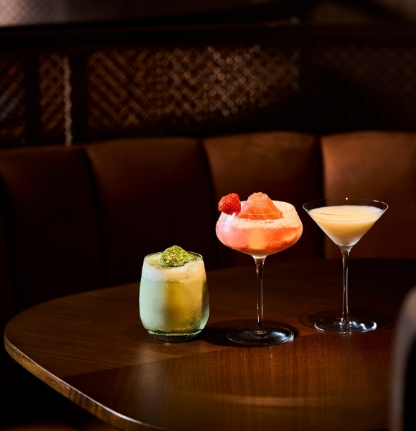 ホワイトチョコレートやバニラアイスの白を基調とした、冬らしい味わいのマティーニ、抹茶とバニラアイスのソーダアップ、バニラとココナッツアイスを合わせたシャンパーニュカクテル――華やかなクリスマス限定カクテルで、大切な人と過ごす特別なひとときをお楽しみください。