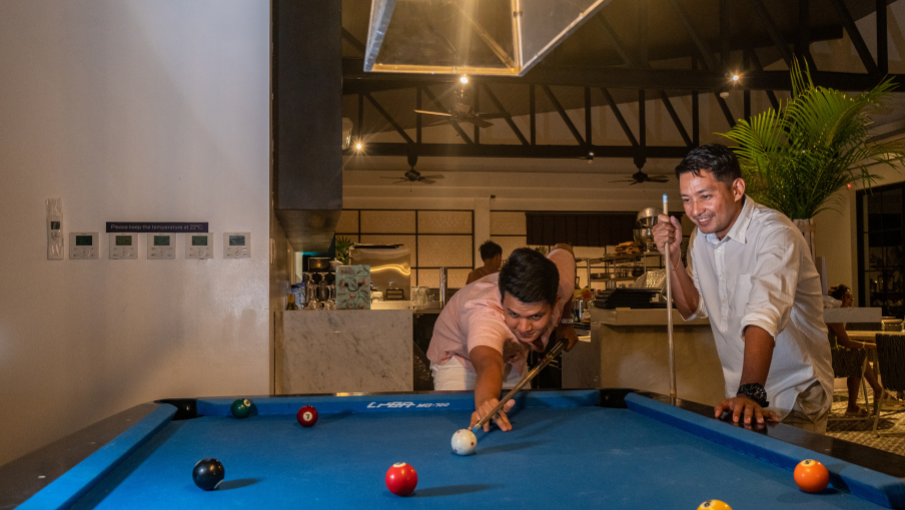 Unwind with a classic game of billiards in our relaxed island setting—perfect for friendly competition or casual fun. Whether you’re a seasoned player or just looking to pass the time, our billiards area offers a great way to enjoy leisurely moments indoors, away from the sun. Gather your friends, line up your shots, and make memories one game at a time.