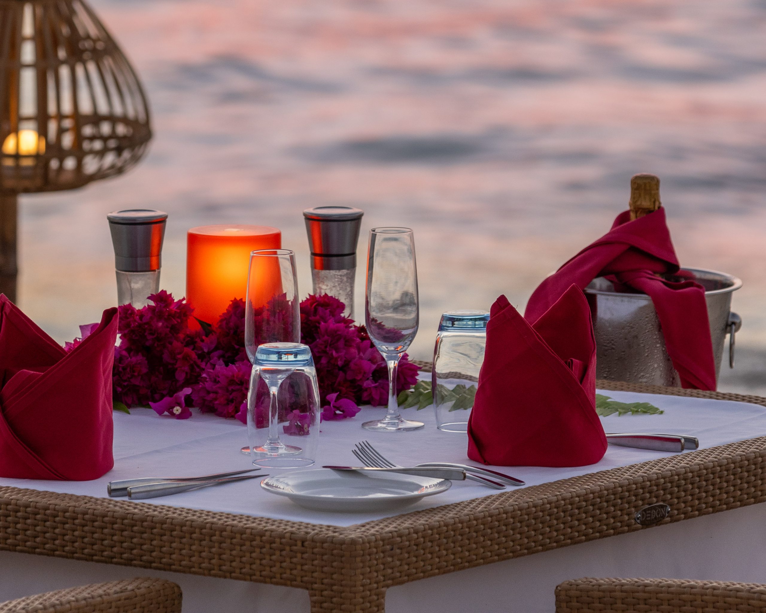 デュシタニ モルディブ のボーダーレスダイニングのコンセプトは、どんな状況にも合うようにデザインされた豪華なお料理を、信じられないような環境でお召し上がりいただくために、様々なお食事の選択肢をお客様にお届けすることです。