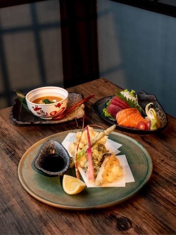 This special menu at UMU begins with a delicate appetizer and progresses through fresh seasonal sashimi, silky chawan mushi, and the highlight of the experience—crispy, golden lobster tempura.