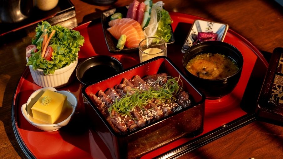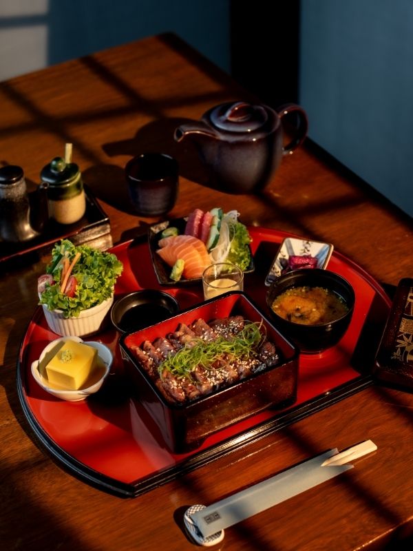 Teishoku is a traditional Japanese meal, thoughtfully composed of a main dish served with rice, miso soup, pickles, sashimi, and a fresh green salad. The harmony of these flavours creates a perfectly balanced dining experience.